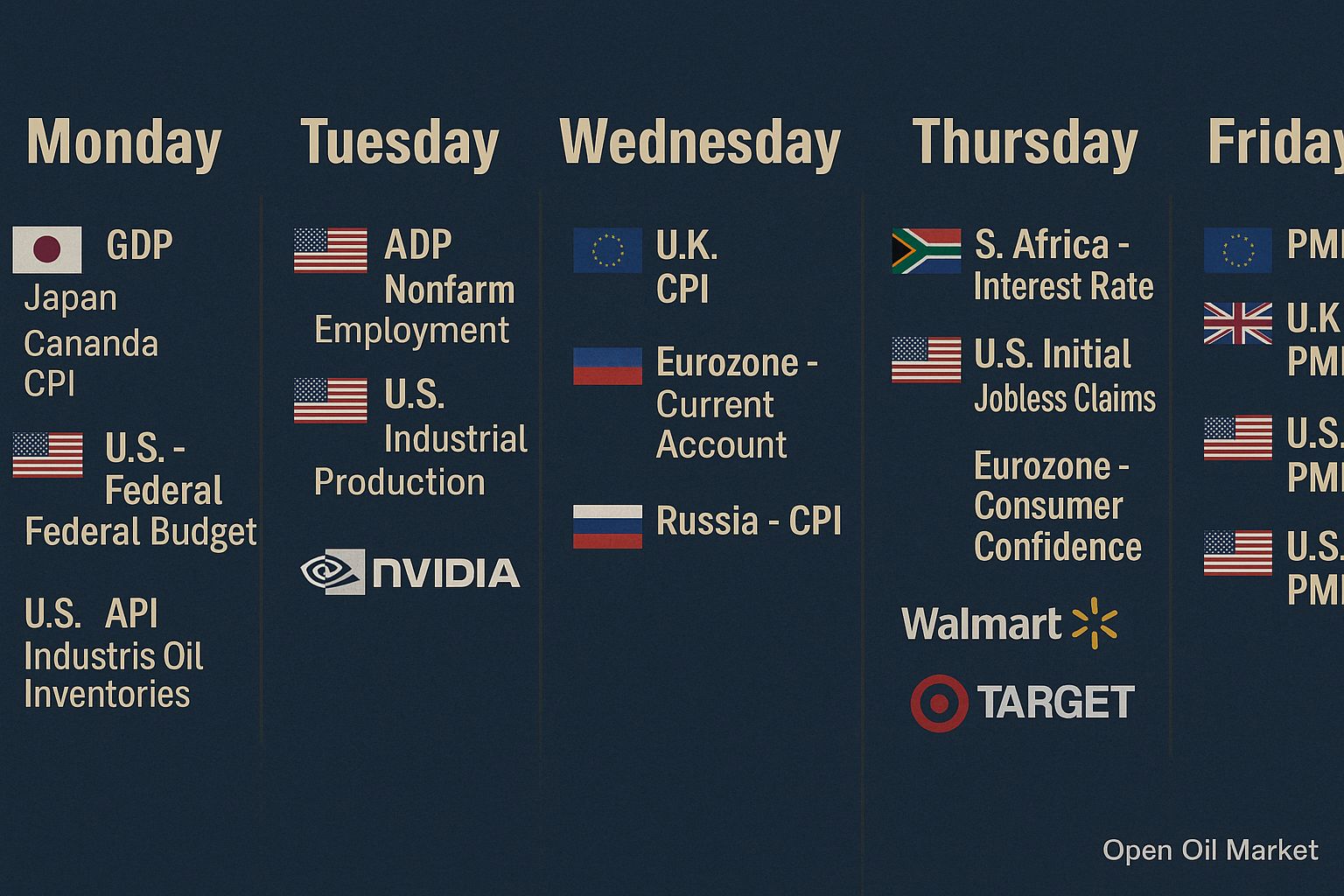Обзор недели 17–21 ноября 2025: ключевые экономические события и корпоративные отчёты. В центре внимания — NVIDIA, Walmart, Target, инфляция (CPI), индексы PMI, решения центробанков и инвестиционные тенденции мировых рынков.